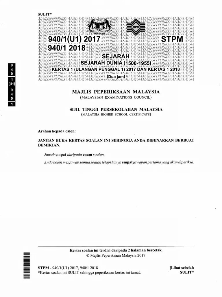 Soalan Sebenar Stpm Sejarah Penggal 1 2018 - Latihan Latihan Sejarah Stpm Kertas 1kertas 1kertas 1 Sejarah Duniasejarah Duniasejarah Dunia Studocu